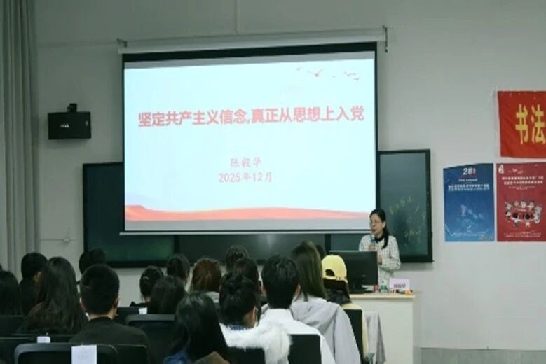 培训第一讲,校党委副书记陈毅华围绕“坚定共产主义信念,真正从思想上入党”授课,强调思想入党是终身追求,是组织入党的基础,她梳理了我党从古田会议到新时代的曲折历程。她为学员们详细剖析了各类入党动机,并期望学员们要树立以共产主义信仰、全心全意为人民服务为核心的入党动机。她阐明入党需坚守信仰、履行义务、甘于奉献,通过理论学习与基层实践锤炼党性。