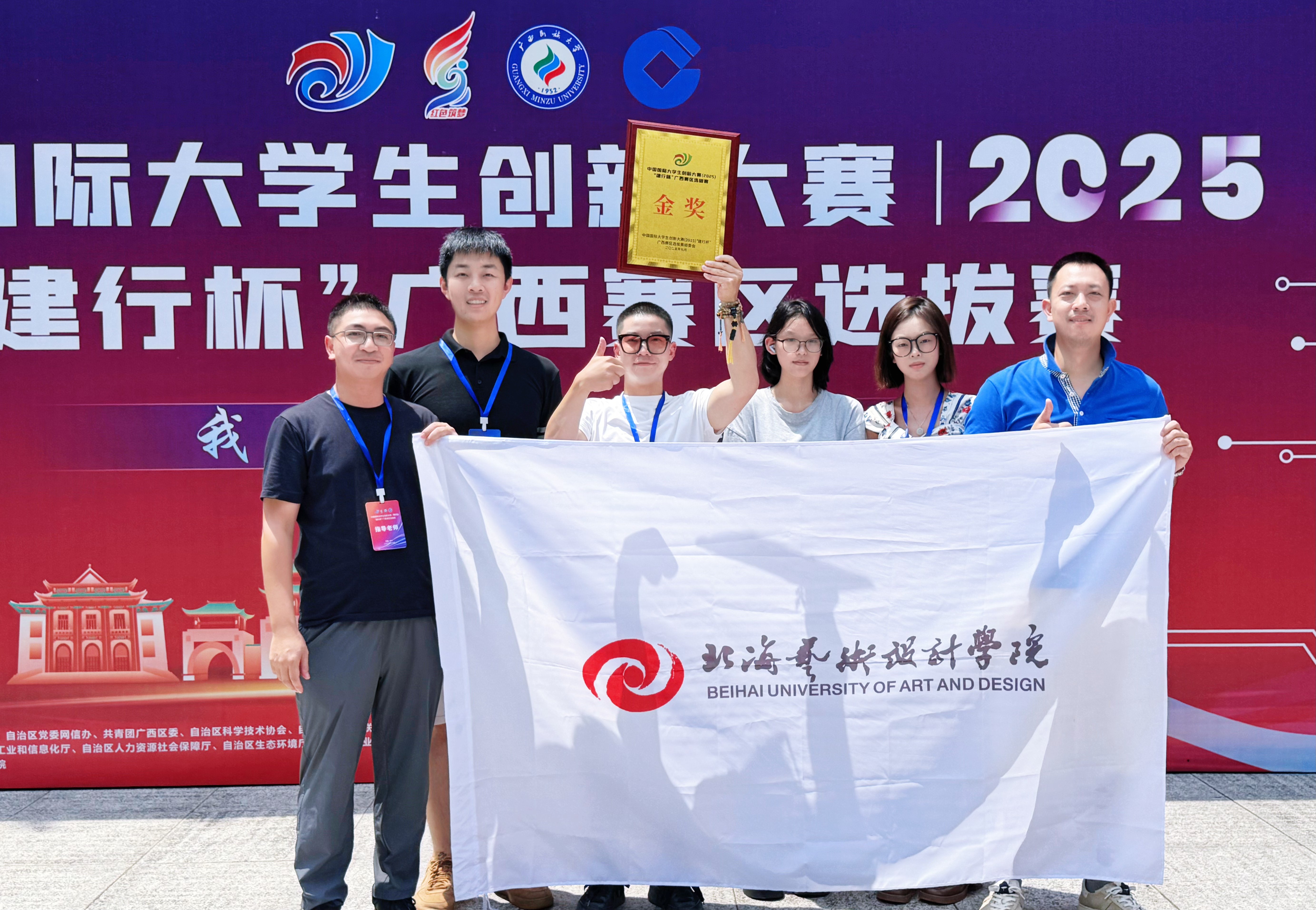 近日,中国国际大学生创新大赛(2025)广西赛区选拔赛现场总决赛在广西民族大学圆满收官。历经多轮激烈比拼,我校学子凭借项目《铸新陶旧 从桂出发——以现代潮流设计赋能坭兴陶传统工艺,再创本土地域新品牌》脱颖而出,成功跻身现场总决赛,并斩获大赛金奖。