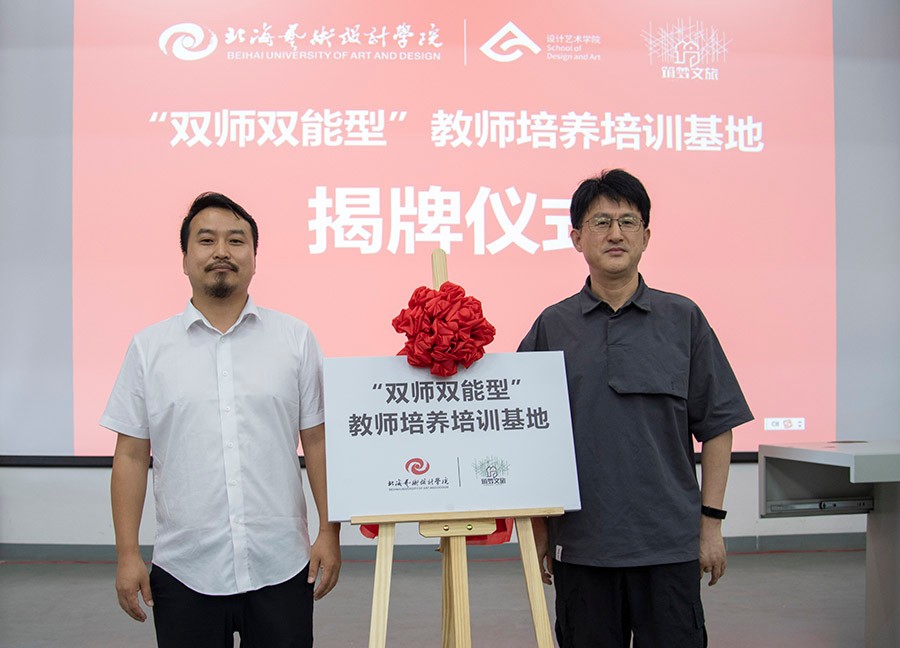 首先进行了我校与筑梦文创共建“双师双能型”教师培养培训基地的揭牌仪式,借此共建机会,加强我校“双师双能型”教师队伍建设,进一步提升应用型人才培养质量,增强服务地方经济社会发展能力。
