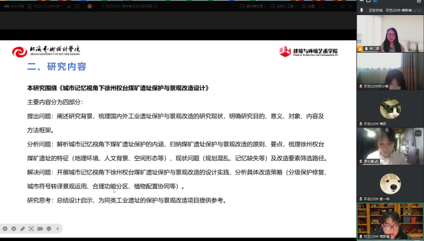 本次开题答辩严守学术规范、紧扣教学要求,分阶段高效开展。筹备阶段,指导教师精准讲解答辩流程、注意事项,同步会议链接并细致审核收取答辩材料,为答辩顺利进行筑牢基础;答辩过程中,学生通过PPT演示,系统阐述毕业设计(论文)的立题背景、研究意义、核心框架、主要内容、设计实践概况及分阶段实施计划,清晰呈现选题构思与研究思路。答辩组教师围绕选题学术价值、理论支撑、服务人群定位、设计可行性及研究方法等核心维度深度质询,从科学性、创新性、落地性三方面给出专业点评与针对性优化建议,既为学生完善研究方案、明晰修改方向提供关键指引,也有效激发了学生的学术探索热情与设计创新思维。