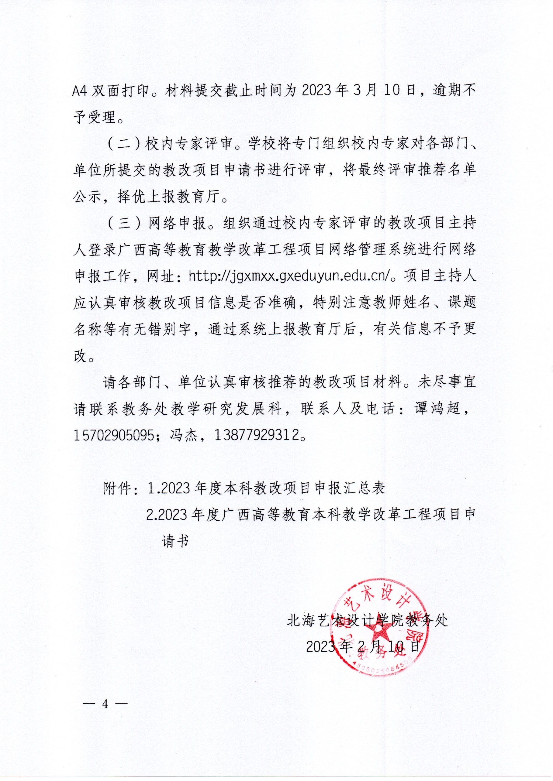北艺教务〔2023〕 6号关于组织申报2023年度广西高等教育本科 教学改革工程项目的通知