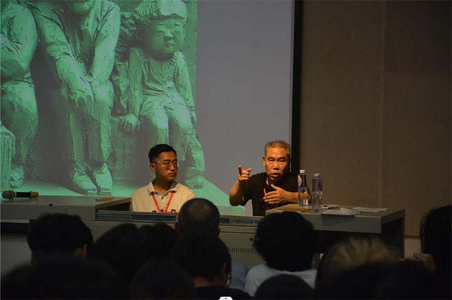 王少军教授通过展示他个人的一系列雕塑作品,讲述作品创作过程中的心路历程及作品对自身发展的影响,从而深入探讨雕塑艺术,说明具象写实雕塑的作用和意义。王少军教授表示写实艺术永远具有生命力,存在于人类社会的需求之中,他在此基础上尝试不断创新和探索,从中找出更新的意义,进而奠定了“角儿”这一艺术观念的基础。在雕塑技艺的基础分享上,他鼓励大家要脱离雕像写实的功能,用雕塑的语言超越现实的边界,将雕塑的灵魂可视化。
