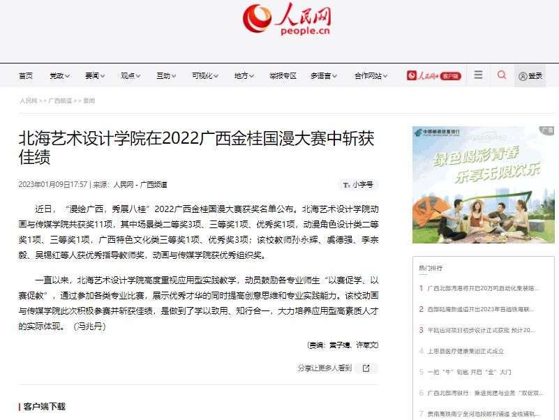 人民网:北海艺术设计学院在2022广西金桂国漫大赛中斩获佳绩