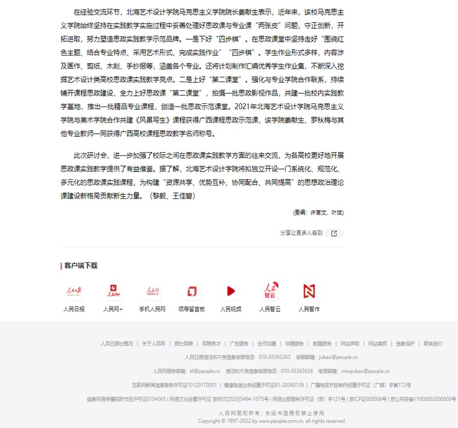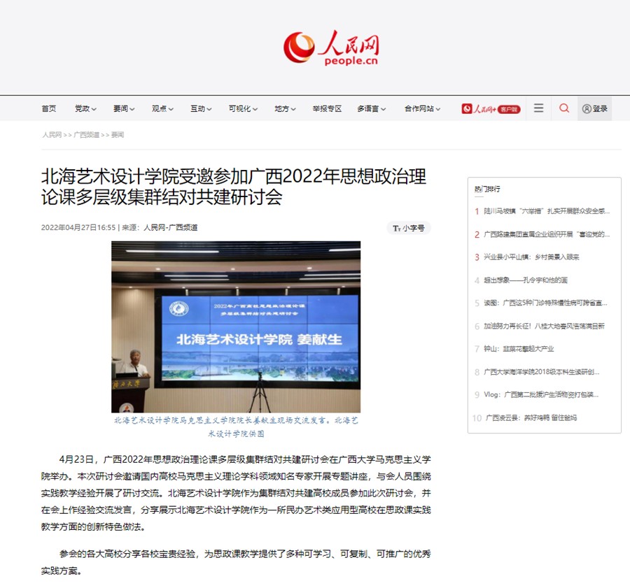 【人民网】北海艺术设计学院受邀参加广西2022年思想政治理论课多层级集群结对共建研讨会