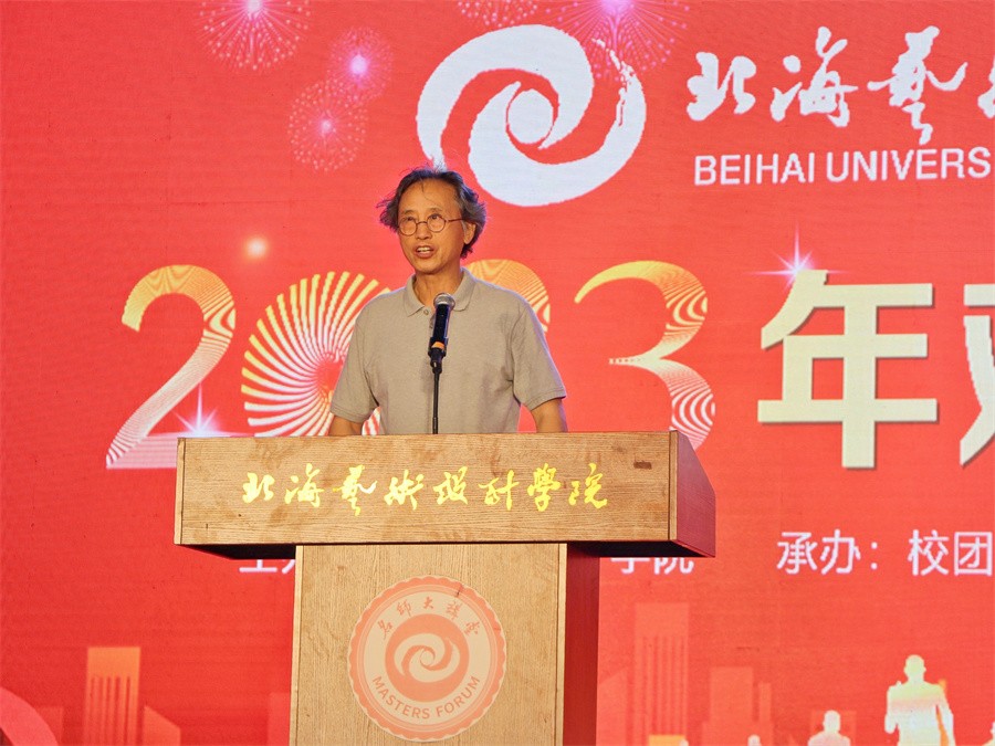 在晚会节目开始前,卢新华校长上台为晚会致辞,并对即将赴京学习、进入新的学习阶段的2020级学子送上最真挚的祝福。他表示,2020级学子在北艺道德为本、艺术求精的办学理念的影响下,努力践行勤学、求新的学风,成长为意气风发、充满活力的青年才俊。他希望赴京学子能够依托北京的优质资源,开拓艺术创作的视野,接受知识的洗礼和艺术的启迪,成为社会建设所需要的人才。为此卢新华校长向上京学子提出三点期望: 一要有坚定理想信念。要心记国家事,肩抗国家责,筑牢信仰之基,补足精神之钙、把稳思想之舵,传承革命先辈的精神,把个体的艺术设计才华投身到人民大众对美好生活的追求上来。二要有担当拼搏的精神。有担当才会有建树,有拼搏才不会被困难压倒。对想做爱做的事要敢试敢为,每位同学应站在时代的潮流,不能错过成就事业的任何机会。 三要有勤学求新的意识。希望学生们站在这个大舞台上,珍惜这一年宝贵时光,充分学习发挥首都的优质资源,努力吸纳一切优质文化和艺术的精华。最后,他祝愿同学们以青春之名,昂首启程,逐梦前行,不负时代不负韶华,再创人生新篇章!