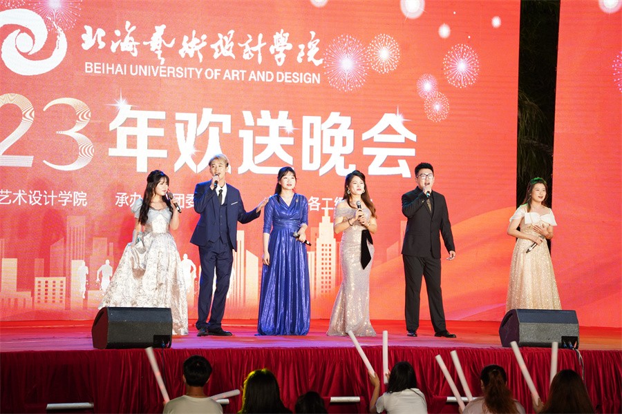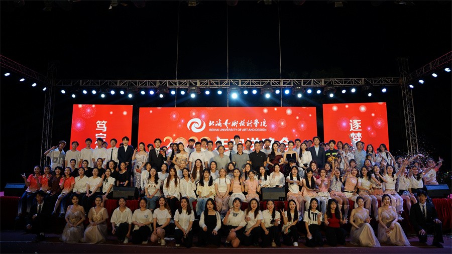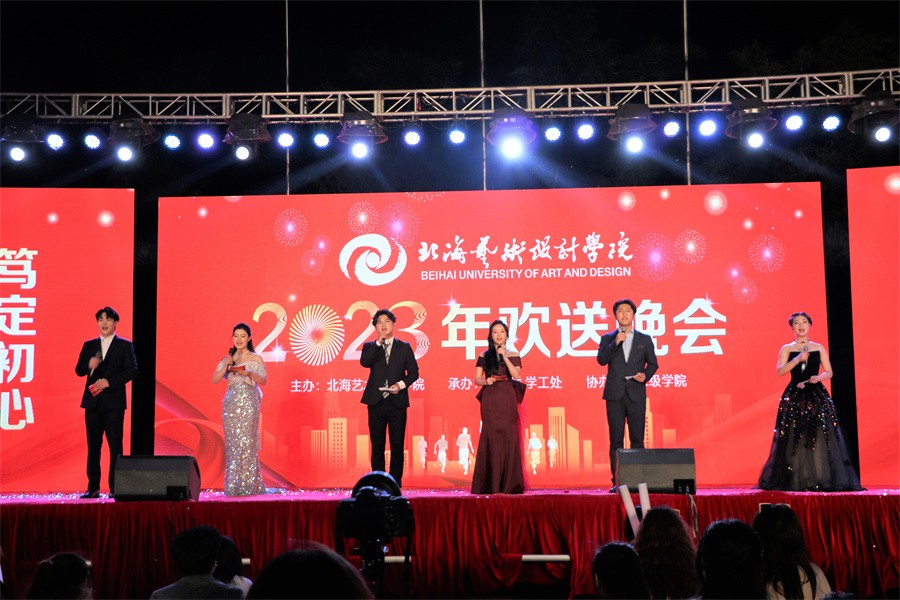 为欢送2020级学生上京,展现北艺学子青春风采,5月26日晚,我校于西校区操场举行了“笃定初心,筑梦前行”北海艺术设计学院2023欢送晚会。校长卢新华,党委副书记、副校长彭仁,副校长邱杰、陶立阳,各二级学院各处室负责人出席晚会与广大学子欢聚一堂。