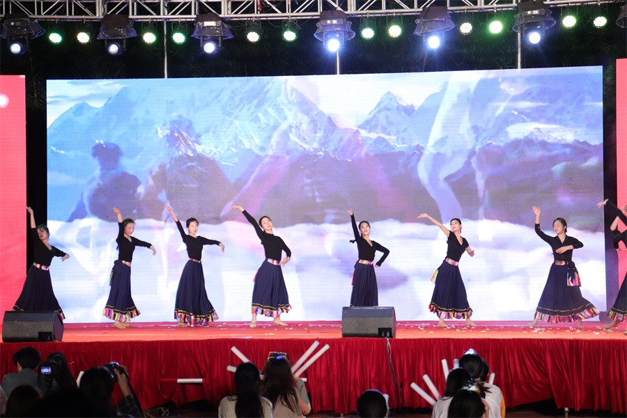 校舞蹈团的《春种》从耕种到累累硕果,藏族姑娘们劳作中的美好形象和活力,倾情演绎小小的种子终将成长为美丽广阔的麦田。