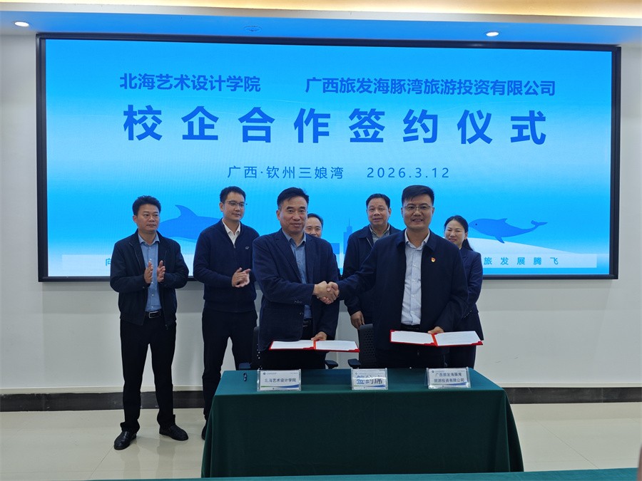 在全体嘉宾共同见证下,我校与广西旅发海豚湾旅游投资有限公司签署校企合作协议。广旅海豚湾党支部分别与学校美术学院党总支、影视动画学院党总支、设计艺术学院党总支签署党建共建协议。四份协议的正式签署,标志着校企双方建立全方位、深层次合作关系,在党建联建、产教融合、实践教学、人才培养等领域开启协同发展新篇章。