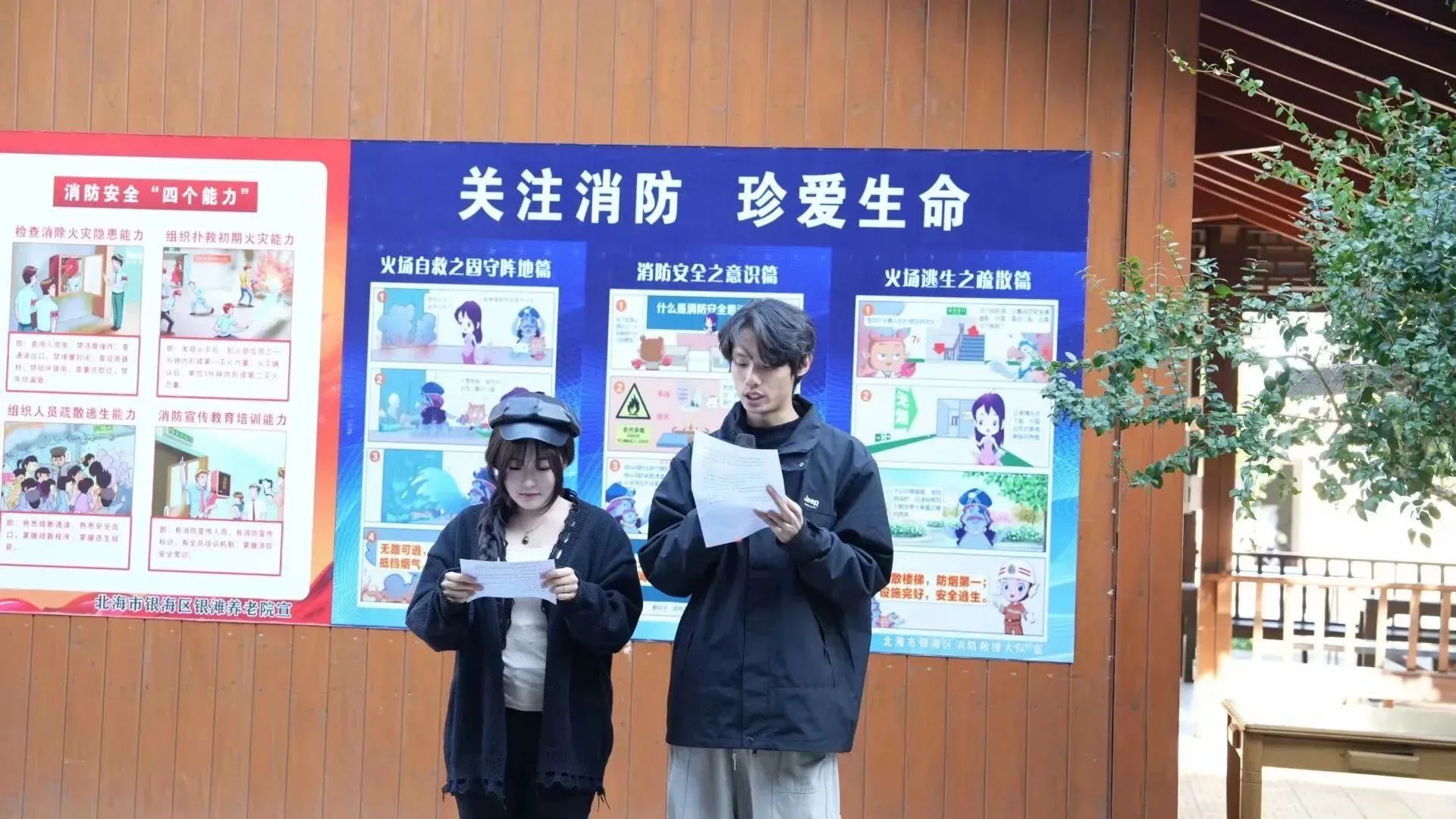 (志愿者与老人们一起唱歌)