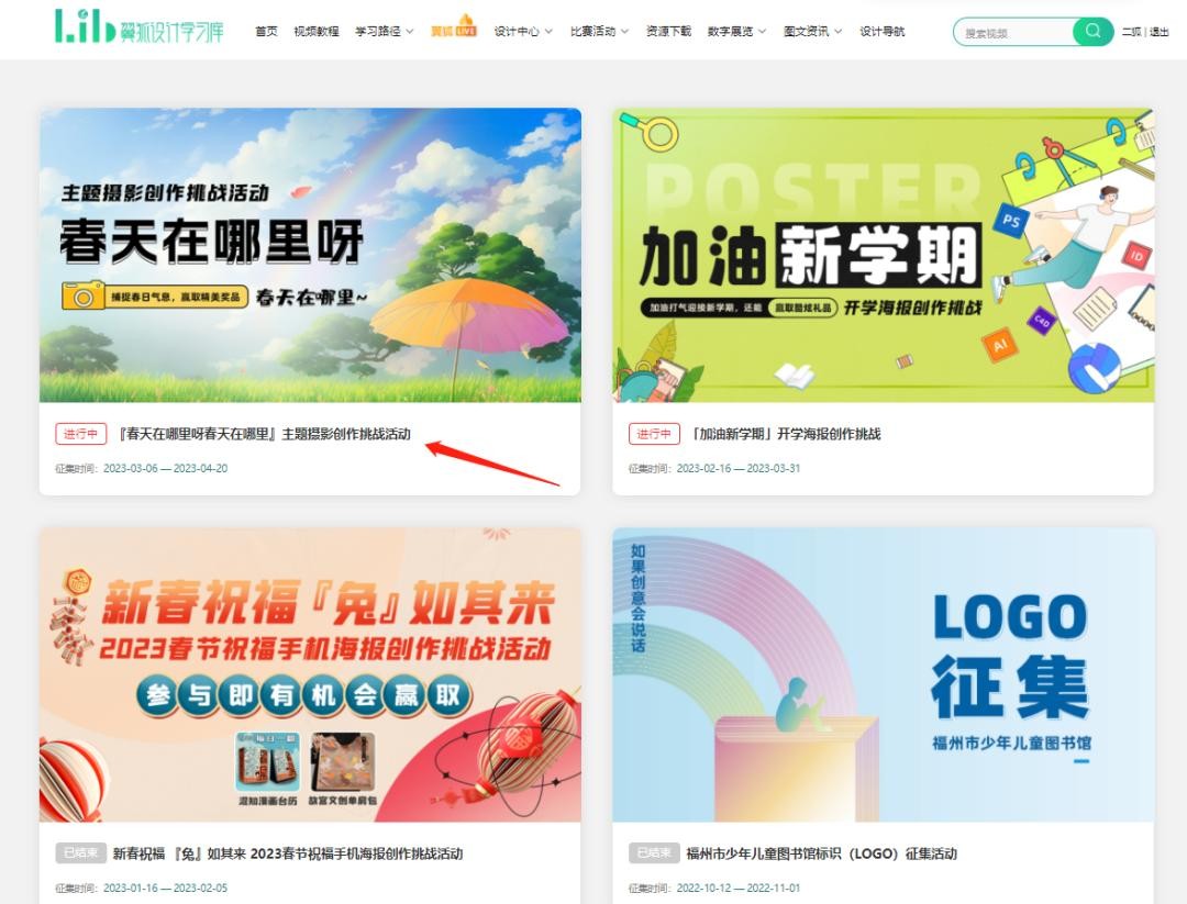 2.通过学校图书馆官网,找到“翼狐设计学习库”,进入“比赛活动”-“创作活动”找到活动入口即可参与。