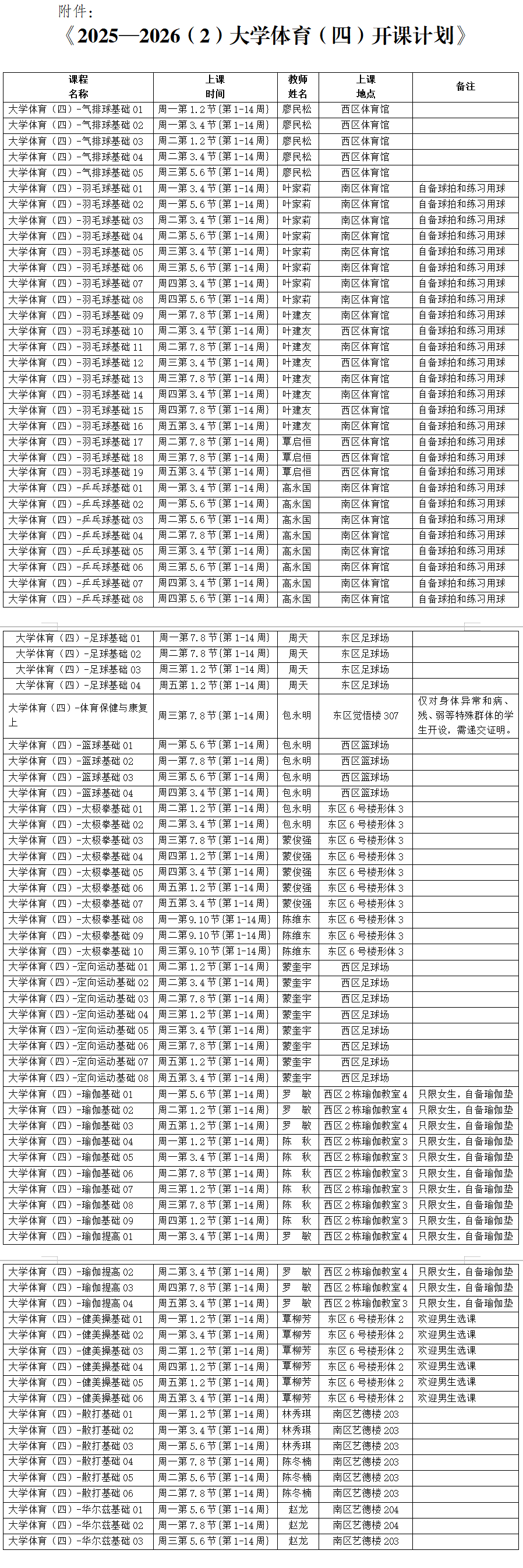 附件2025—20262)大学体育开课计划》