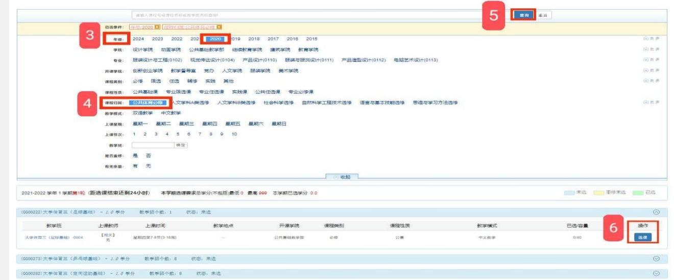 网上选课按照“初选、次选和退补选”3个步骤完成。每位学生仅可选择大学体育四)的一个项目。注意选择的上课时间避免与本人其他课程安排发生冲突