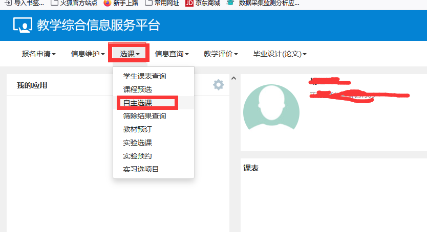 用浏览器打开北海艺术设计学院教务处网站http://jw.sszss.com/(推荐使用IE、QQ或360浏览器);依次点击“教务管理系统(学生入口)”——输入用户名和密码登录--点击“选课”--“自主选课”--“查询”等(可以跨校区选课)--“选课”。