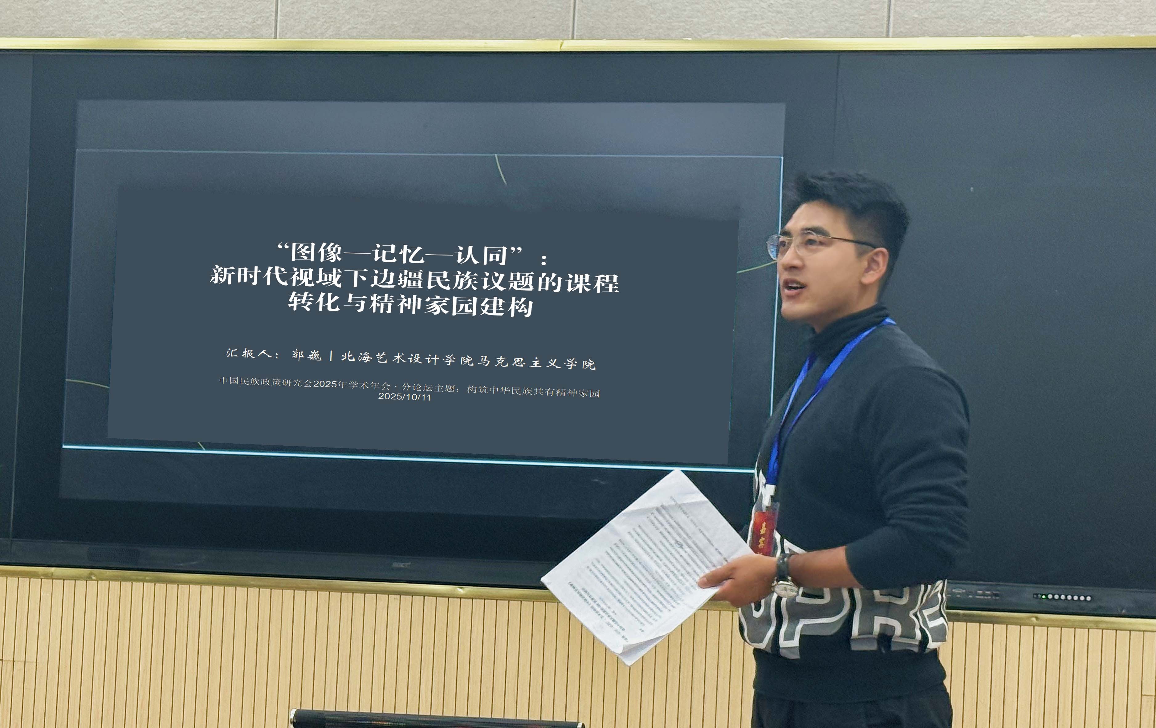 本次论文获入选并现场交流展示,充分体现了我院在课程思政创新、民族团结教育及艺术教育与国家战略深度融合方面的学术实力,为学校推动“艺术+思政”学科交叉发展和构建高水平新时代育人体系提供了重要示范与学术支撑。(郭巍/图)