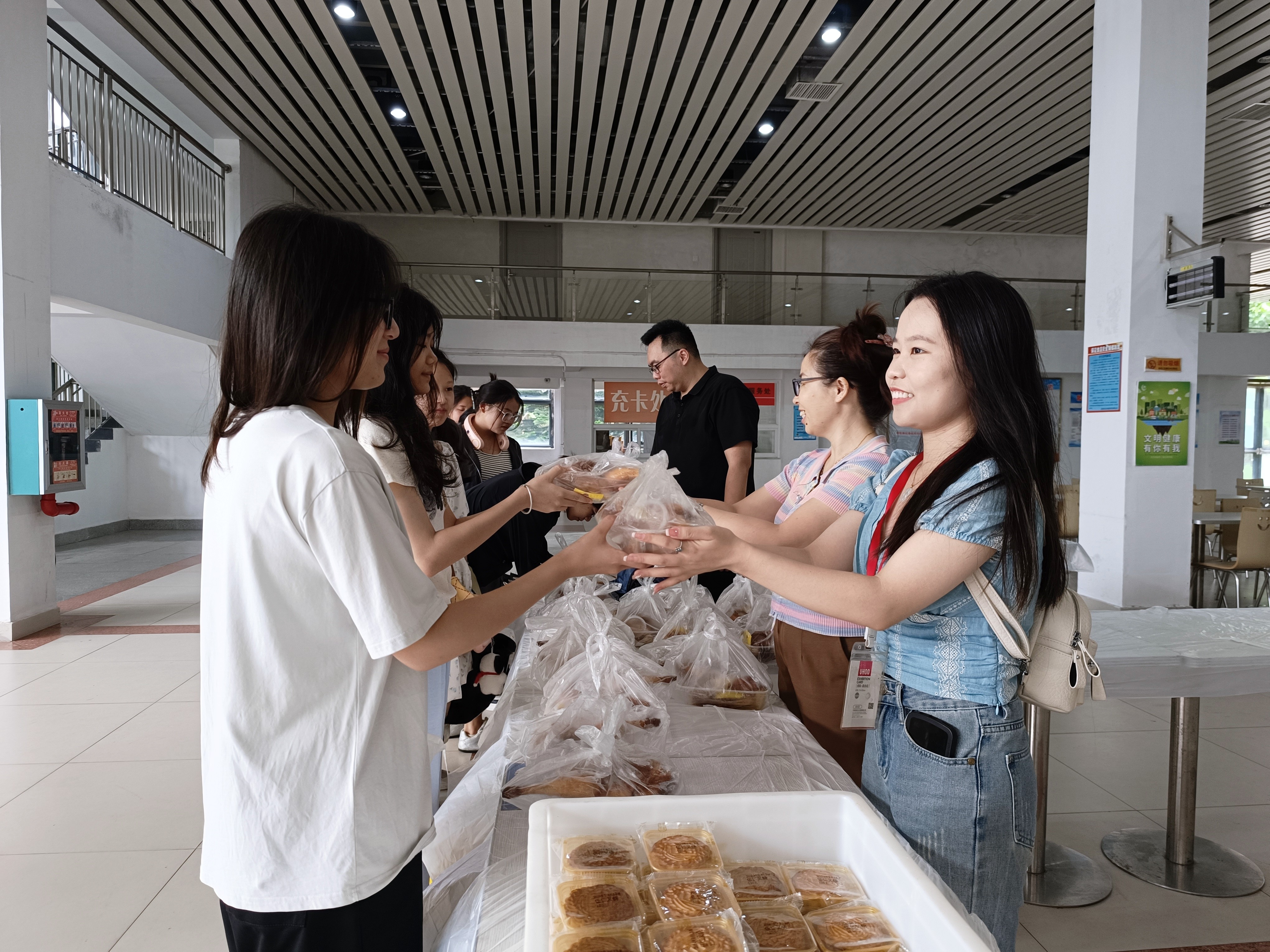 学校通过发放月饼这传统习俗,营造浓厚的节日氛围,让学生在校园中也能感受到节日的喜庆与温馨,每一块月饼和每一份烧鸡都承载着学校对学子的深切关怀。此外,学院领导亲自到场为同学们发放月饼和烧鸡也是代表学院向学生传递关怀与祝福的重要方式。这种关怀与祝福,是为增强学生对学校的认同感和归属感,促进师生之间的情感交流。