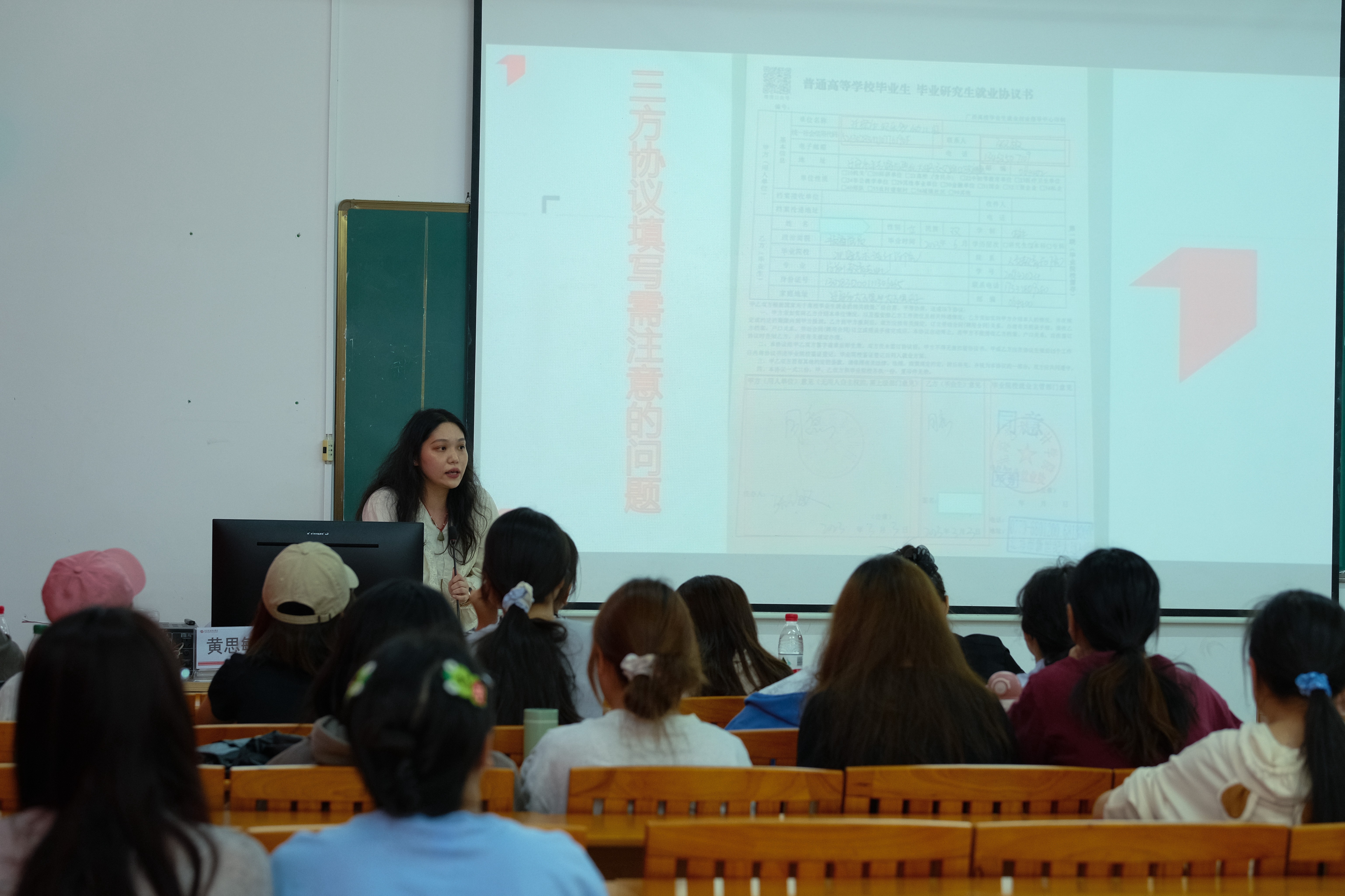 学工办副主任余黎泓从就业角度出发,给同学们提供了实用的信息和建议,也激励了同学们树立清晰的职业目标,增强了他们的就业信心。
