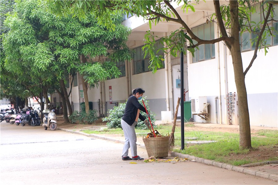 5月1日至2日,学校统筹安排各部门对照疫情防控卫生标准,对东西校区的教学楼、办公楼、宿舍区、图书馆、实训室、工作室、食堂、绿化区等公共区域开展卫生死角清洁工作,并对照防控要求规范教室桌椅摆放及室内防疫标识的张贴。经过全校教职工两天的努力,门窗、风扇、墙面、栏杆、地面擦拖干净,布置美观,物品摆放整齐,校园环境整洁一新。