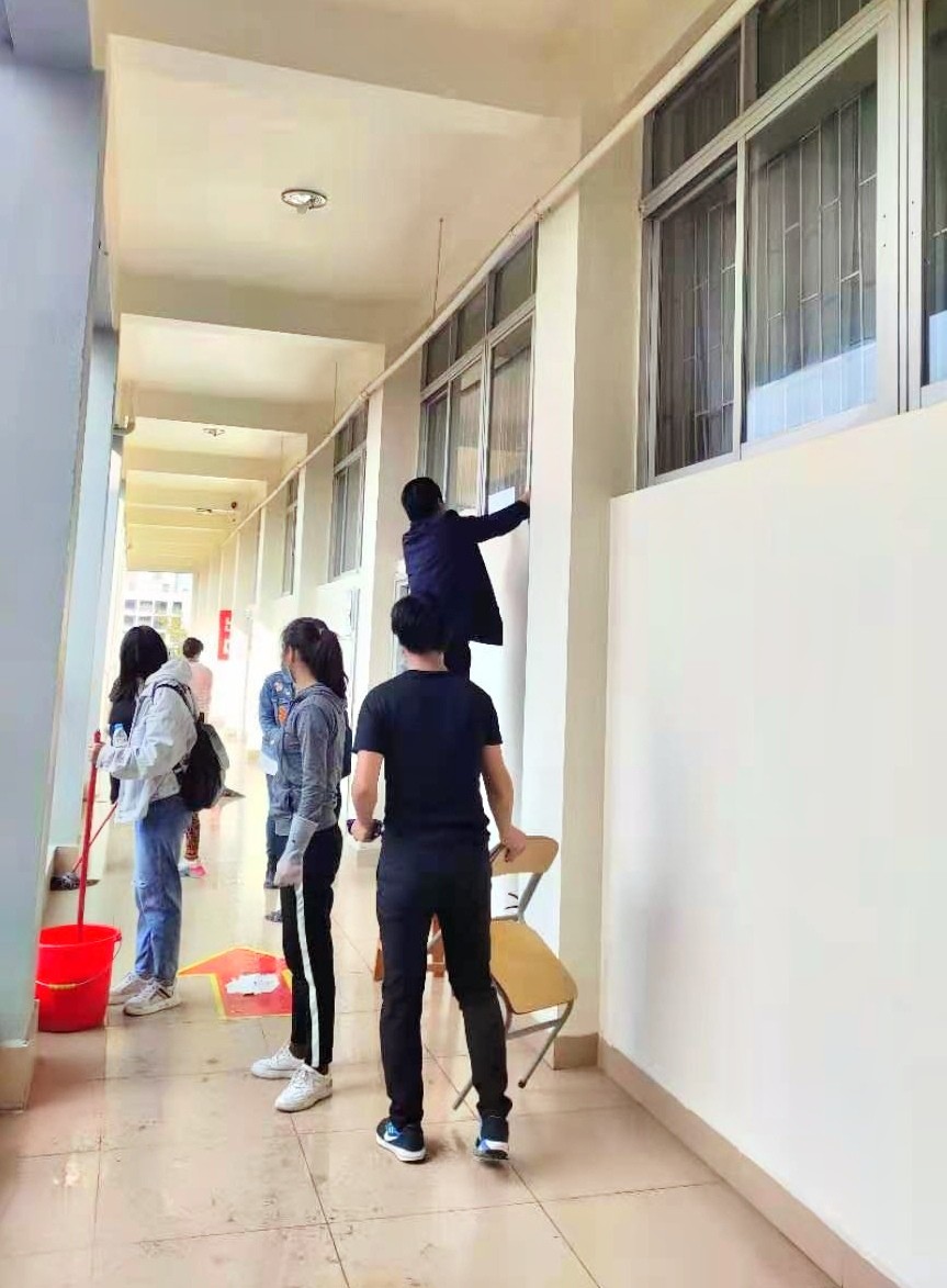 2月24日,在人文学院副院长李水亮指挥领带下,由院办牵头,组织全院教师对学校责任分管区域的办公室楼层,T型楼3楼的教室内外的门窗,墙面,走廊,栏杆,地面,楼梯等公共区域等进行大扫除。教室内设布置,物品摆放整齐,电器及线路进行安全隐患排除,认真排查教学的设施设备,做到发现问题并及时反馈学校相关部门。对分工的楼层防疫标识进行排查及时更换。在卫生清洁过程中,我们学院全体教师积极参与,团结协助,认真仔细地检查了清洁区域卫生,确保清除每个卫生死角。把学院责任分工区域卫生环境面貌焕然一新。