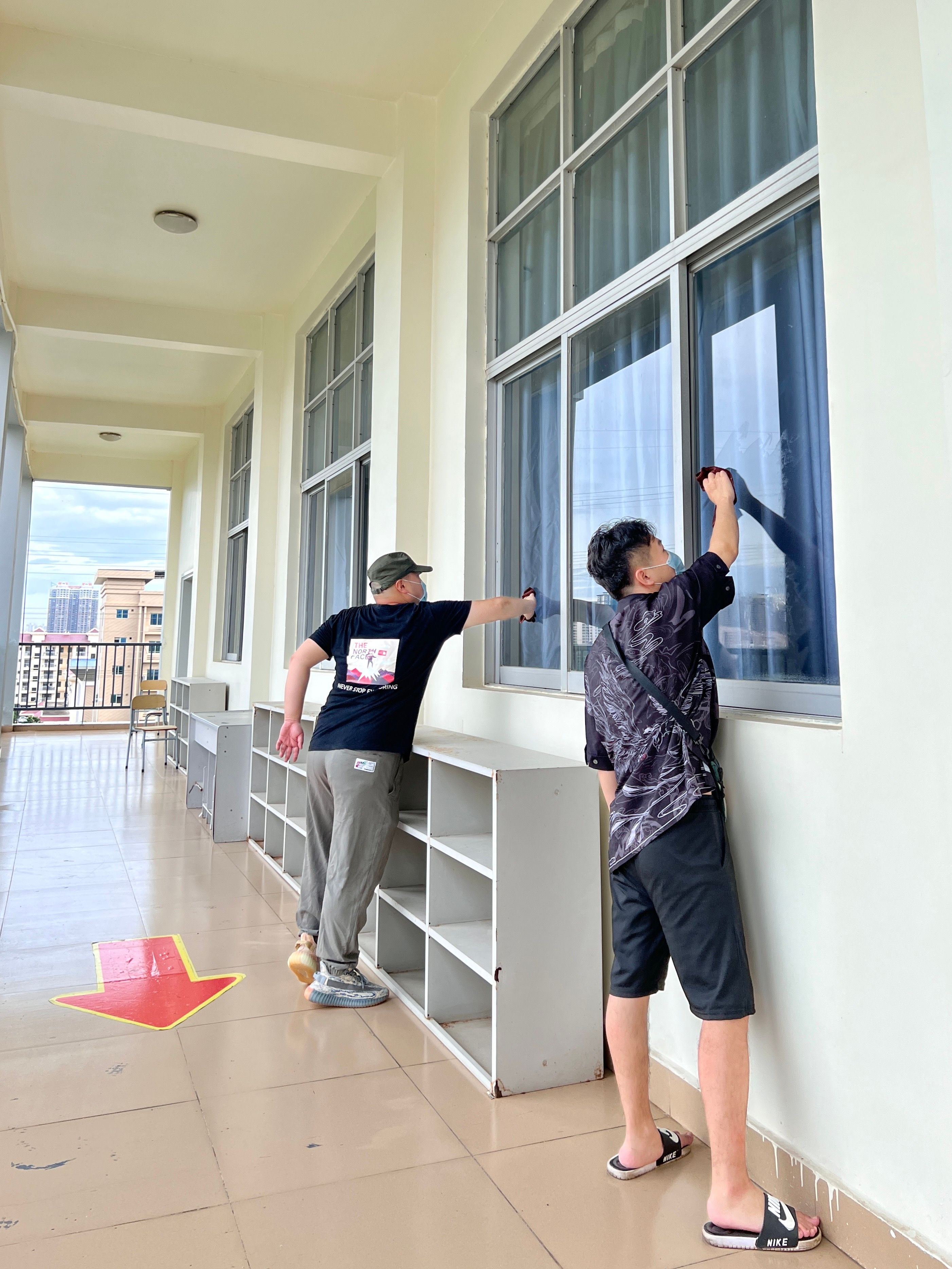 根据学校安排,本次人文教育学院负责清扫区域为觉悟楼3楼至5楼的所有教室以及走廊。清扫内容包括每层每个教室的门、窗、玻璃、风扇、空调、地面、墙面的清洁以及防疫标识的更换,要求做到窗明几净、墙面地面干净无污渍、教室物品物品摆放整齐、防疫标识更换到位。