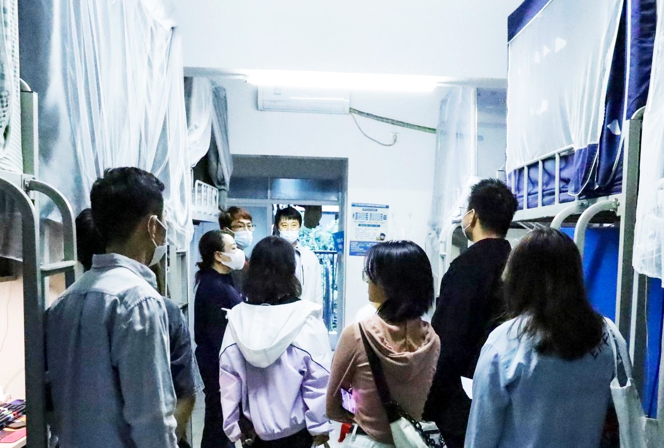 我院始终把学生作为中心,定期巡查走访学生宿舍,是为了更好地了解、掌握大学生的思想动态,把学生的教育管理服务有机结合起来,也希望同学们在未来的大学生活中,能与室友友好相处,共同进步。(范馨予/摄)