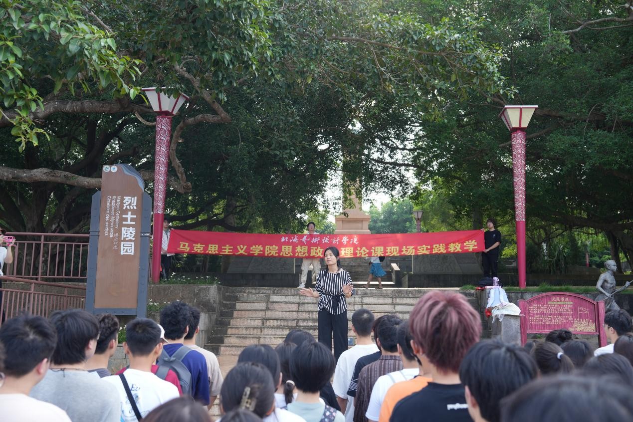 此次“涠洲岛”实践教学活动,全体师生还在涠洲岛红色广场开展“红色涠洲”实践教学课程。涠洲岛红色广场是以纪念碑为主体的红色教育基地,包括红色剧场、红色之路、国防教育馆等场所。课程开展期间,同学们认真听取思政老师讲诉涠洲人民在抗战时期以各种方式英勇抗争的英雄事迹。课后,同学们瞻仰革命烈士纪念碑,重走红色之路。此次红色教育课堂让同学们深入了解了涠洲红色历史,赓续红色血脉,增强家国情怀。