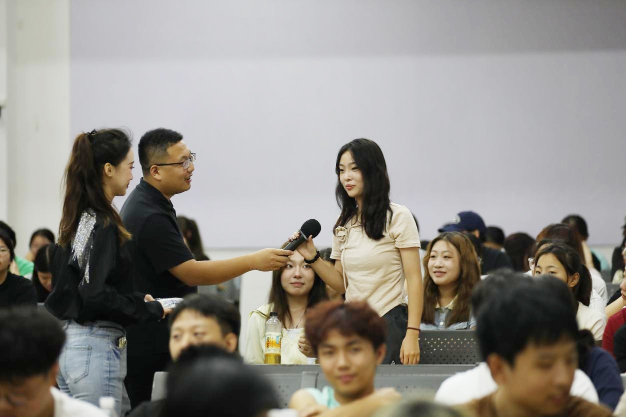 讲座的最后,庞定坤书记通过提问环节,巧妙地回顾了讲座的要点,激发了同学们的积极参与。学生们踊跃举手,争相回答,答对问题的同学还获得了精心设计的专属奖品,现场气氛活跃而热烈。