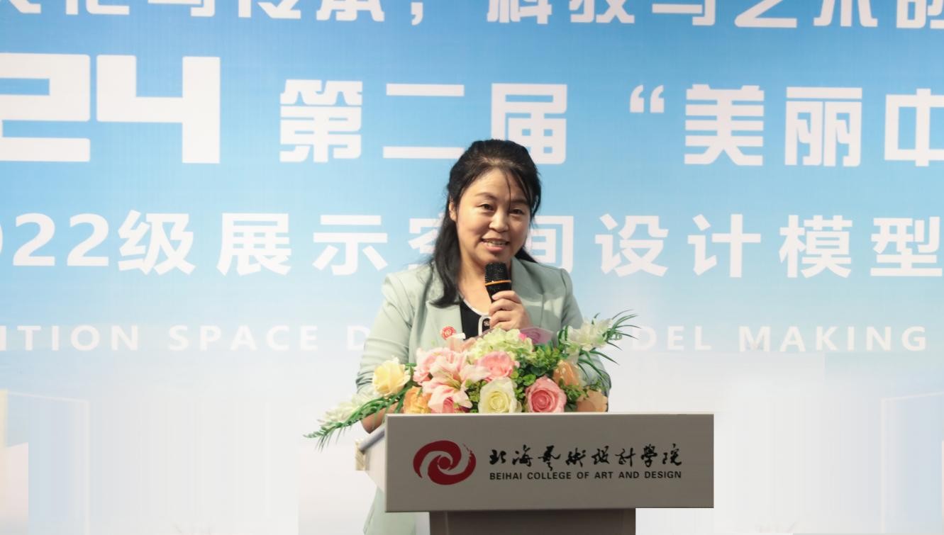 党委书记覃宪儒宣布金橄榄杯第二届“美丽中国——文化之美”,2022级环设专业展示空间设计模型制作成果展正式开幕。