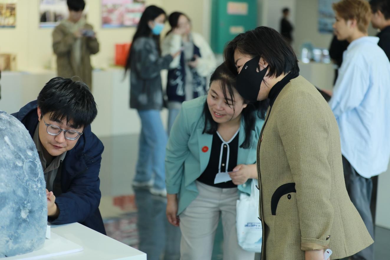 最后在观展互动环节中,各组同学积极介绍他们的作品,聆听各位领导、嘉宾和老师们的指导,各位领导、嘉宾和老师们在欣赏作品的过程中,为同学们的作品盖上专属的点赞印章,活动结束后,依据印章数量,评选出“最受欢迎作品”。相信这场艺术和文化之旅,将让大家充分感受到同学们的创意与才华,以及中国文化之美在设计中的独特魅力与传承。