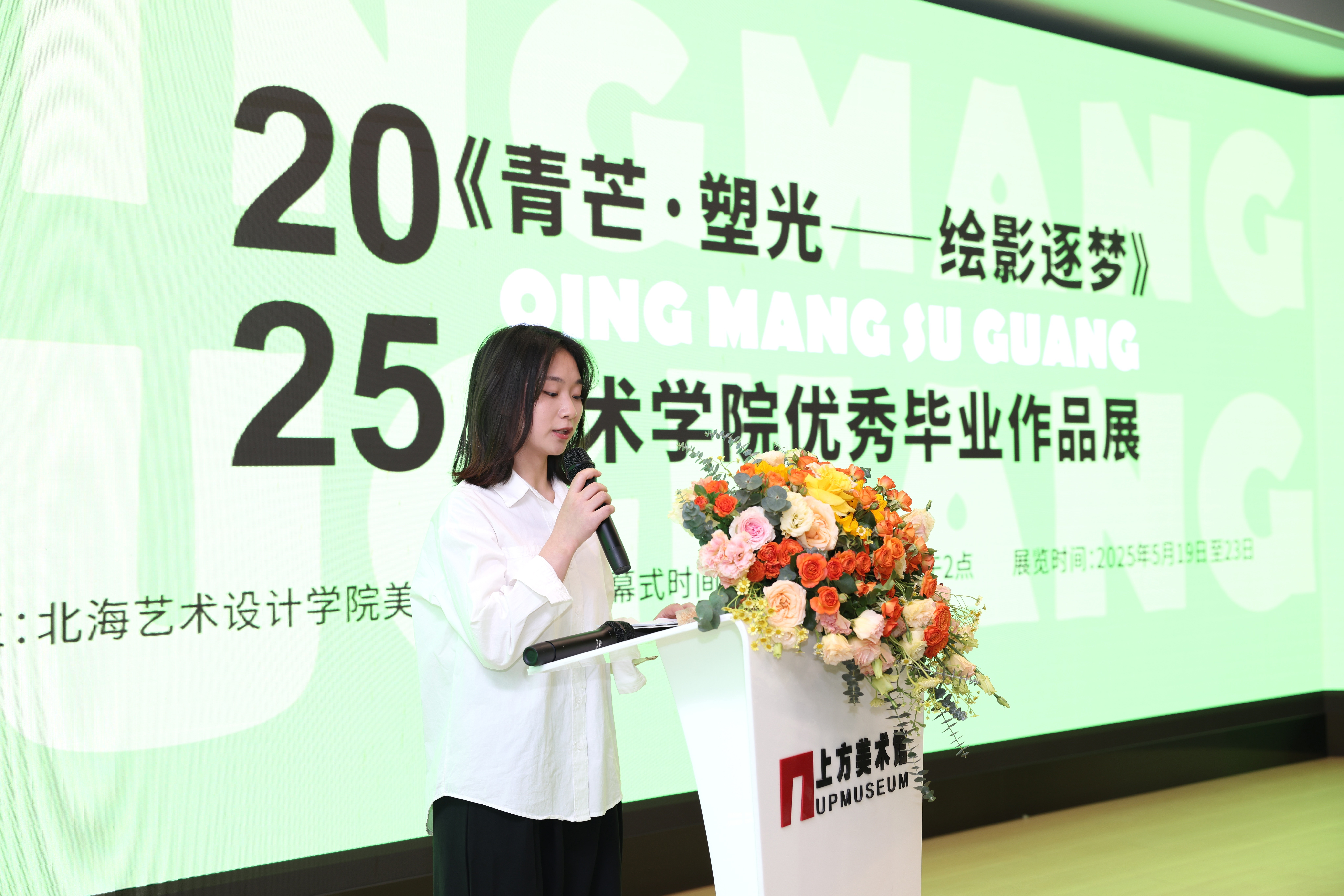 开幕式的最后,由北海艺术设计学院党委书记覃宪儒宣布《青芒·塑光——绘影逐梦》北海艺术设计学院美术学院2025优秀毕业作品展正式开幕。