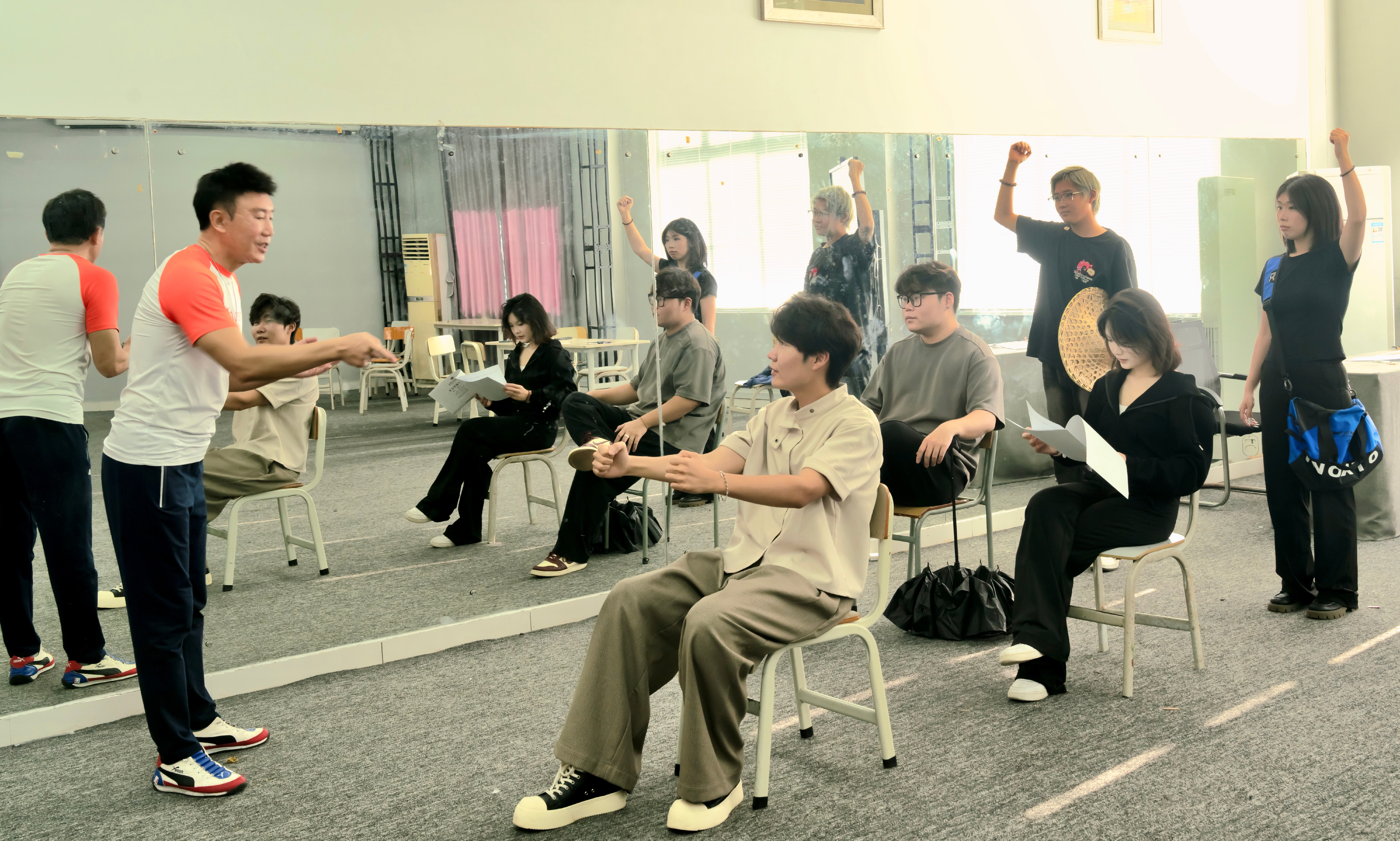 据此次项目的总编导王玥教授回忆,今年4月获悉中国科协通知时,原定团队已赴京实习,只得紧急挑选大一(现大二)年级5名学生重新组队。“五一”假期师生封闭打磨剧本、拍摄剧照、填报材料,又要合同审批、提交流程,学院办公室、教研室多位教师冒雨往返,“一张立项书背后是一整座校园的接力”。随着首演日程将至,传媒艺术学院播音与主持艺术专业的排练厅灯火通明。播音与主持艺术专业的学生在王玥教授的指导下,对台词、走位、灯光、音效等进行最后一轮排练,每一次的练习都是为了12月11-12在校西区大礼堂呈现更好的作品做准备,同学们积极配合着王玥教授拍击节拍器——“滴答、滴答”,那是毛江森院士当年在实验室时间秒针的走动,如今被复刻成一句句有情感的台词。