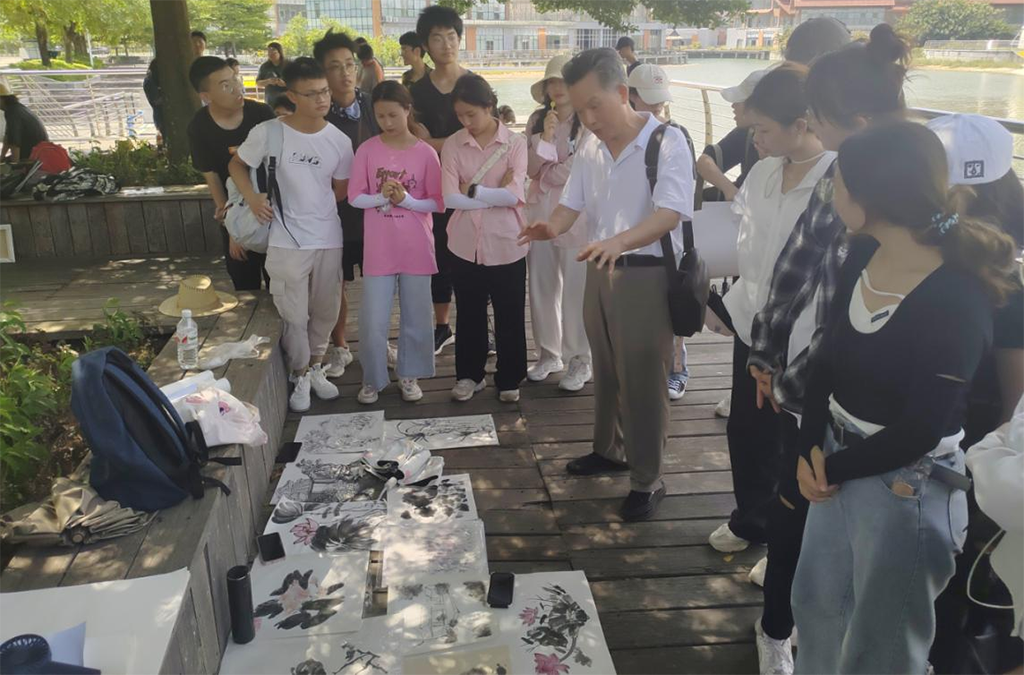 国画学习的三个环节——临摹、写生、创作,这其中的写生能力训练在学生当下的学习阶段中尤为重要;通过这次写生实践活动,学生从不会写生,到逐步能够认识到写生的重要性和基本规律,其教学成效明显,为后续的创作课程积累了相当数量的素材,这其中巫维轩教授对学生的谆谆教诲和倾力指导起到了决定性作用。(张湘中 摄)