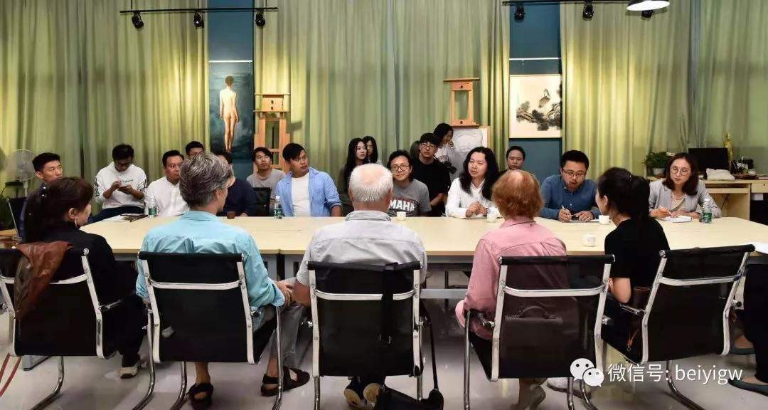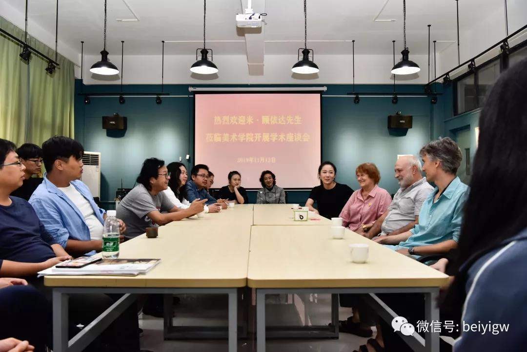 下午四点三十分,米·顾依达院士到美术学院艺术楼313进行学术交流活动。副校长胡胜、美术学院常务副院长龚为、副院长成斌、副院长唐海以及美术学院师生共同参与了座谈会。