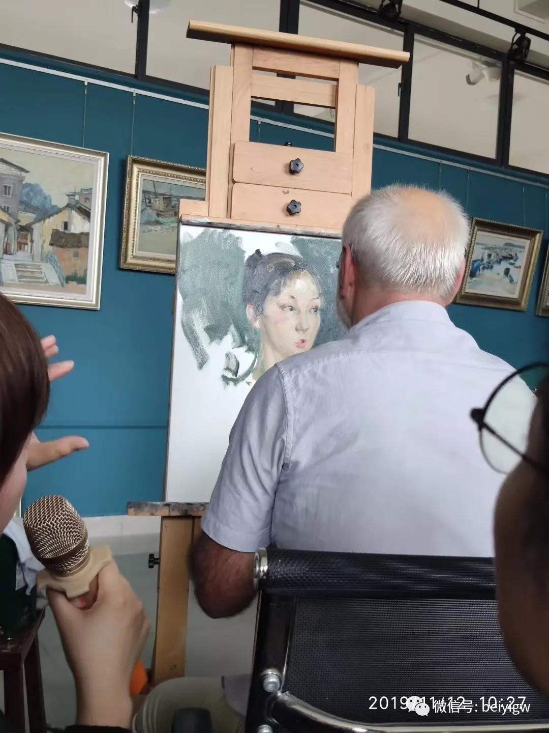 2019年11月12日(星期二)上午,乌克兰艺术科学院院士、绘画艺术大师米·顾依达莅临我校美术学院教研室(艺术楼313)开展人像写生示范,学院师生积极参与并一同观摩现场作画。