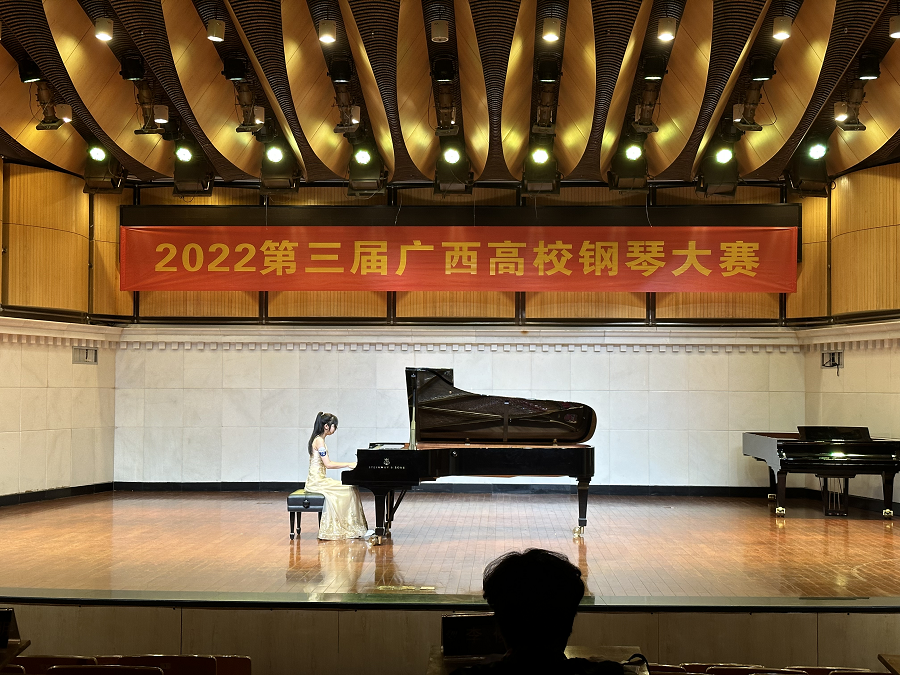 据悉,本届大赛由广西壮族自治区教育厅指导,广西本科高等学校音乐与舞蹈类教学指导委员会、广西艺术学院主办。经过严格选拔,大赛共有来自全区27所高校的700多名选手入围复赛,规模达到历届之最。参赛选手分教师组、专业组、非专业组、师范组、双钢琴与四手联弹组、器乐组等六个组别进行比赛。大赛邀请了来自上海音乐学院、四川音乐学院、广西艺术学院等区内外20余位知名专家担任评委。