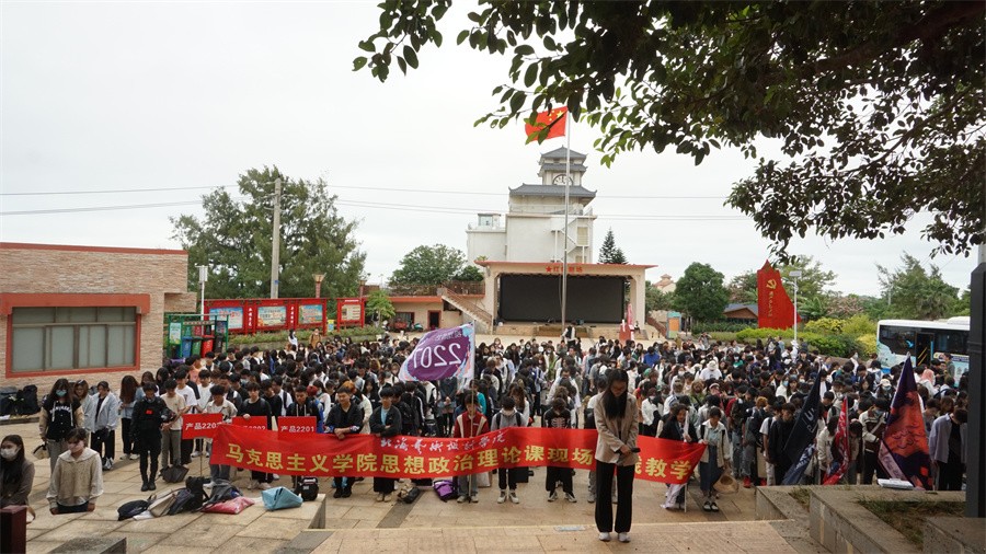 11月5日,马克思主义学院教师李珍群在红色广场向全体师生开展解放涠洲红色之旅的演讲,并带领全体师生向革命烈士表示默哀悼念。此次写生课程把革命历史、中华民族传统文化、民族团结、大好河山等内容的思想政治教育活动融入实践活动中,培养了学生的爱国主义情感、中华民族共同体意识以及社会主义核心价值观。