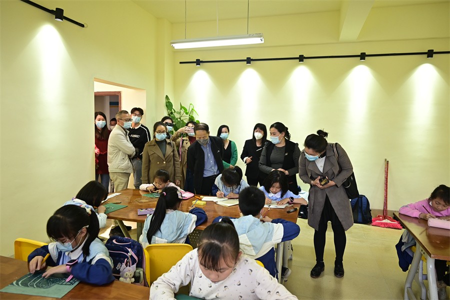会后,包校长带领郭教授及考察团队一行人进入合唱、舞蹈、非遗贝雕传习、版画与书法的课堂进行实时走访考察,对正在给附校学生授课的艺术教育专业学生在校实习的表现给予了充分肯定。