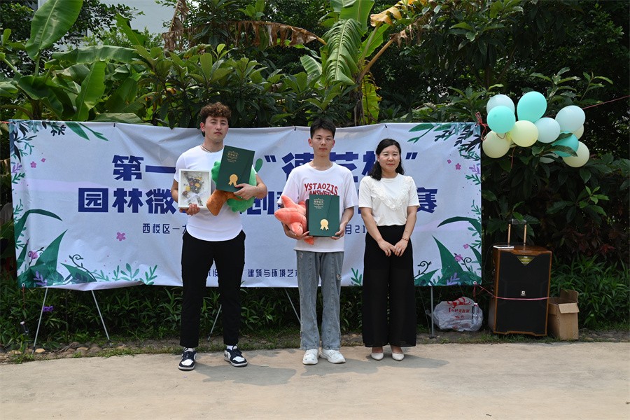 4月21日上午,建筑与环境艺术学院首届“德艺杯”园林微景观创意设计大赛决赛在西校区校园内顺利举行。学工处处长班媚、学工处副处长刘玲花、建筑与环境艺术学院党总支书记张帆、党总支副书记岳莹、学工办主任曲玥及景观教研室专业课教师出席活动开幕式。